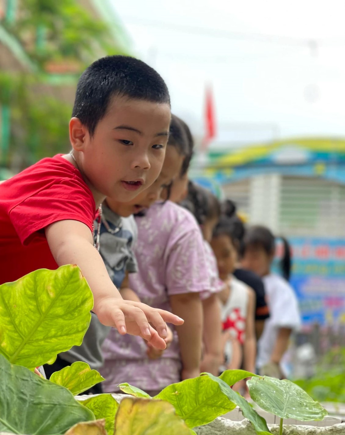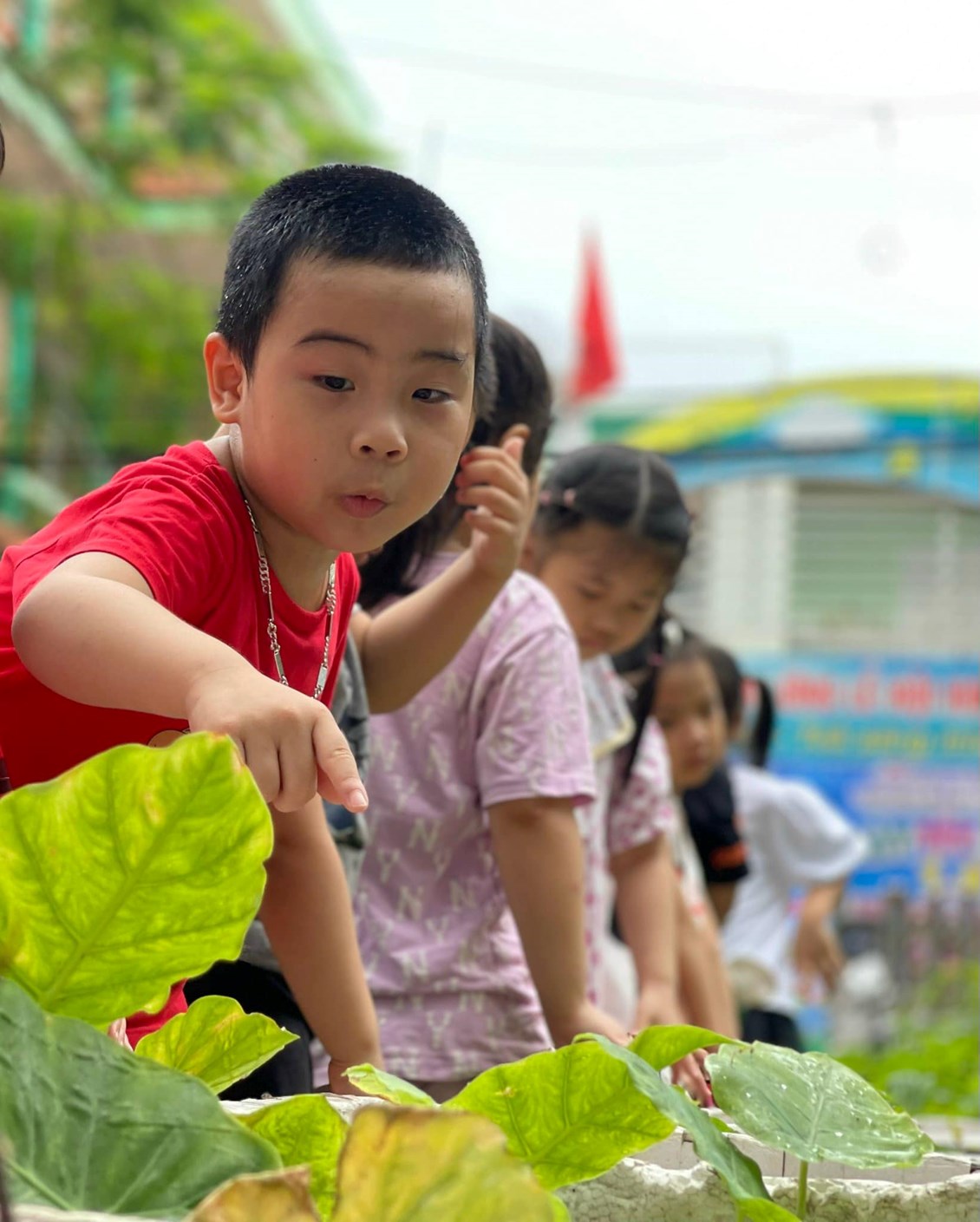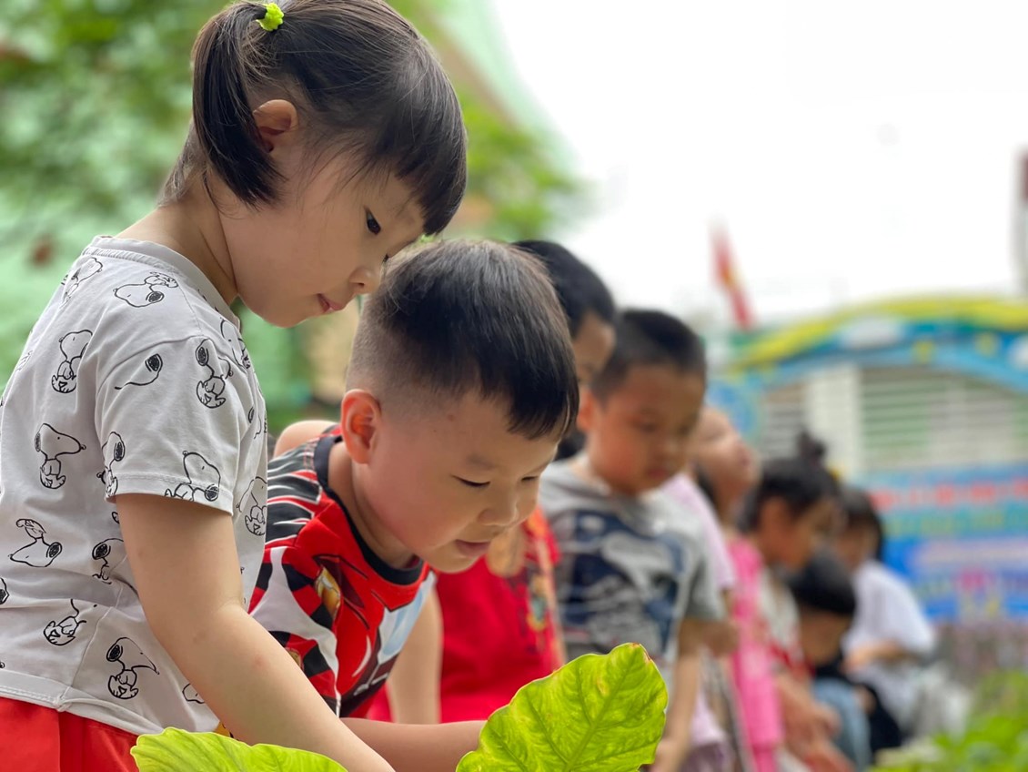 Những chiếc lá với hạt mưa còn đọng lại làm cho những chồi non lên mơn mởn, rau đã có hoa, những giọt mưa đọng dọc theo nhành lá trông giống như chuỗi ngọc lấp lánh bảy sắc cầu vồng...khiến cảnh vật thiên nhiên trở nên đẹp đẽ làm mê đắm lòng người và tâm trạng của các bé lớp 4B2 đều rạo rực, vui vẻ, phấn khởi, hào hứng và đầy tò mò.