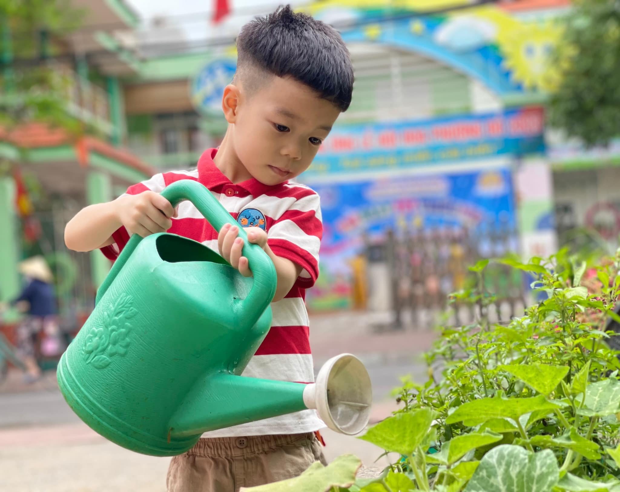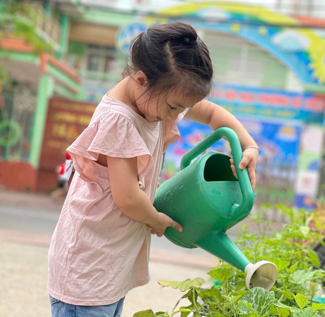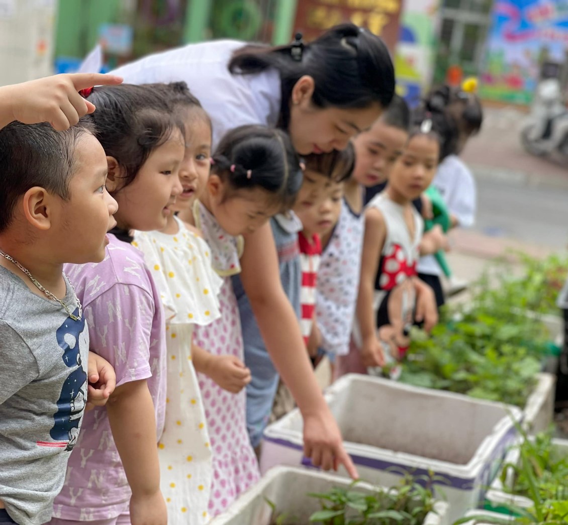 Những chiếc lá với hạt mưa còn đọng lại làm cho những chồi non lên mơn mởn, rau đã có hoa, những giọt mưa đọng dọc theo nhành lá trông giống như chuỗi ngọc lấp lánh bảy sắc cầu vồng...khiến cảnh vật thiên nhiên trở nên đẹp đẽ làm mê đắm lòng người và tâm trạng của các bé lớp 4B2 đều rạo rực, vui vẻ, phấn khởi, hào hứng và đầy tò mò.