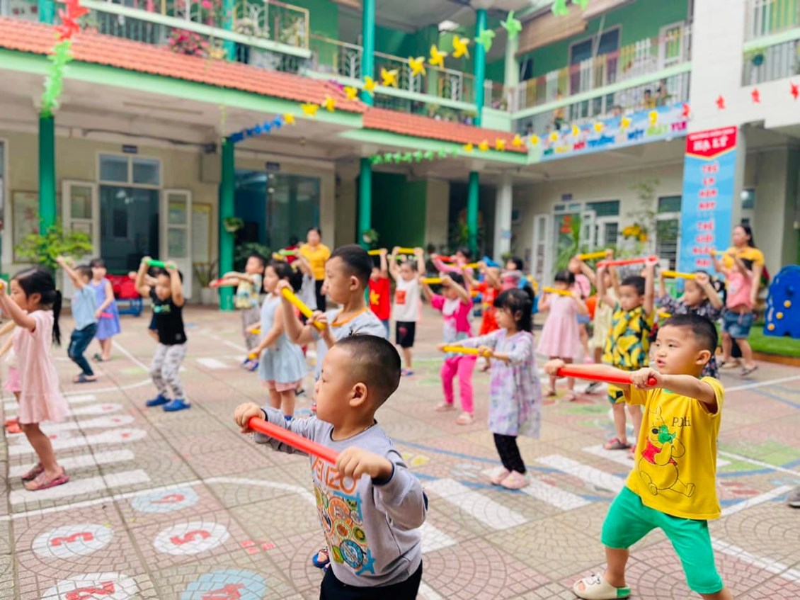❤❤❤️Nắng sớm đã lên rồi, các bé mới được xuống sân tập Thể dục sáng nhưng bạn nào cũng nhanh chóng làm quen sân tập.